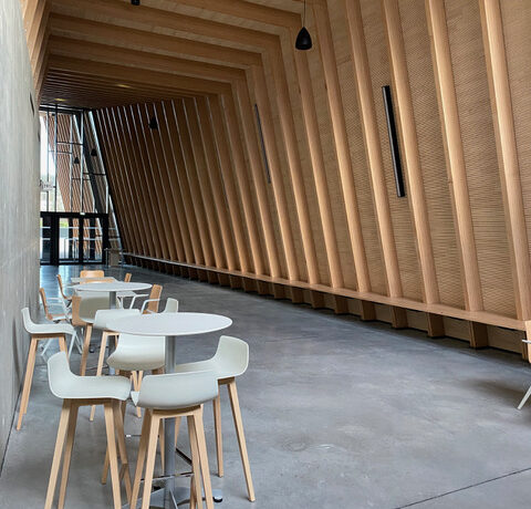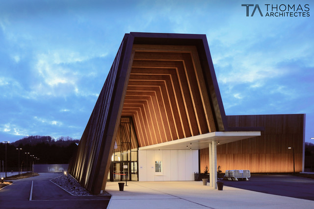 « La Barroise est constituée d’une salle (en ossature bois reposant sur un soubassement béton) d’une capacité de 2 400 places, des espaces d’accueil avec bar et vestiaires, des loges et un office pour l’organisation de cocktails ou dîners. La salle a de multiples usages : concerts, spectacles, théâtre, expositions ou organisation de salons… C’est une volumétrie surprenante, composée de deux entités entrelacées et complémentaires, bardées de zinc, et de bois. » Jean Philippe Thomas